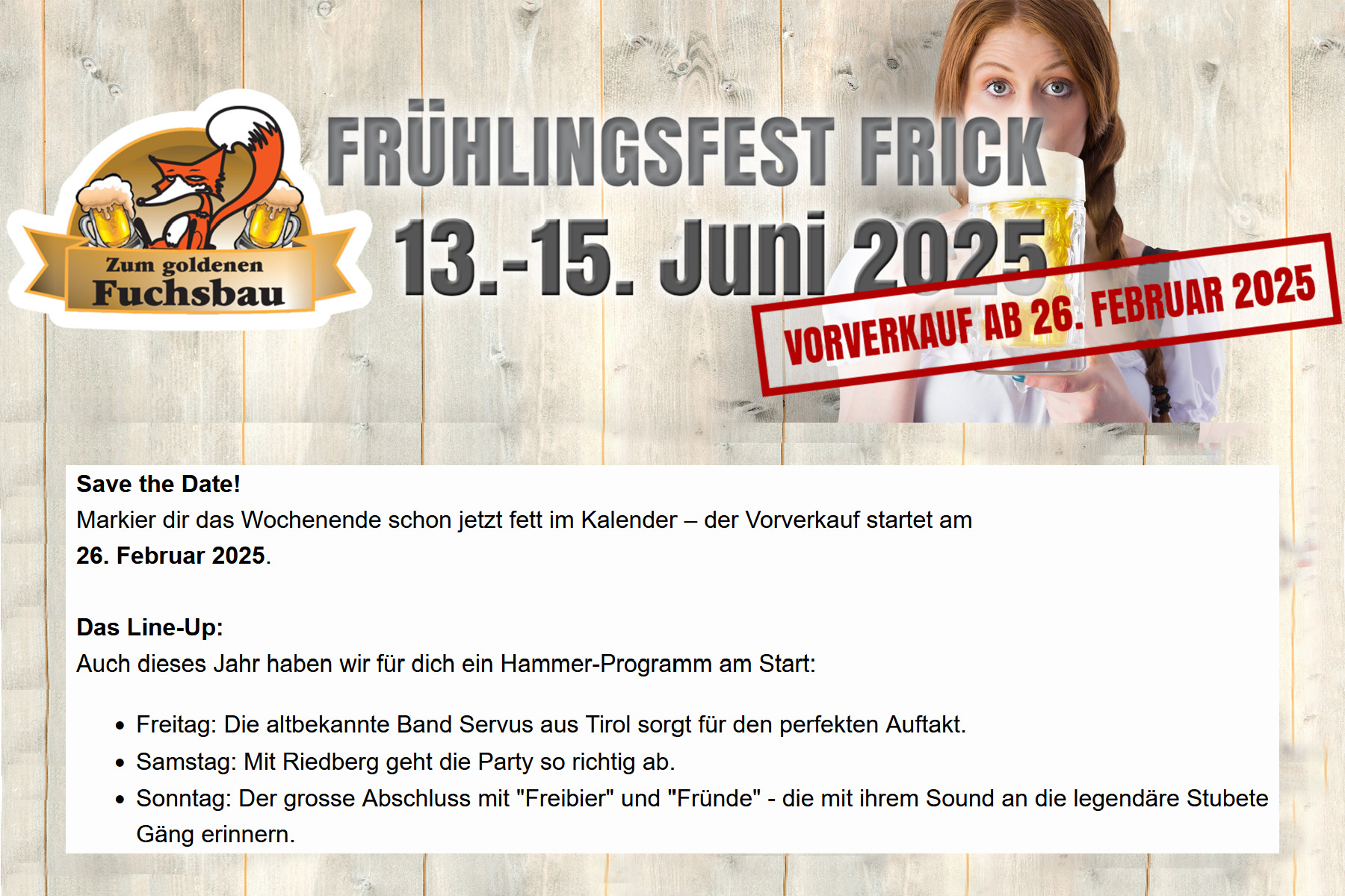 Sei dabei, wenn wir in Frick feiern, tanzen und lachen – das Frühlingsfest 2025 wird ein unvergessliches Erlebnis!