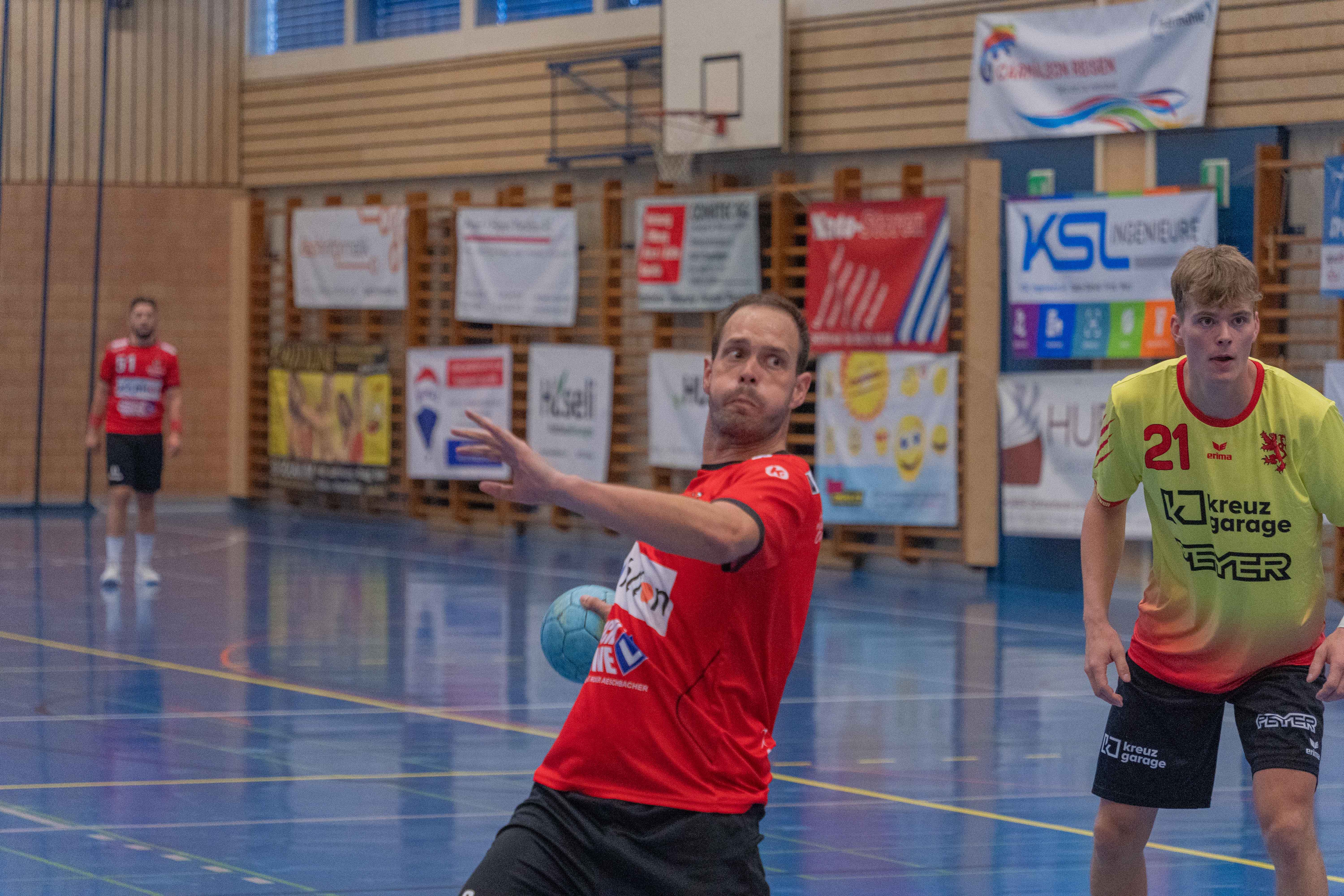 Der zunehmende Regen draußen hatte wiederum Einfluss auf das Handballfeld, welches sich wieder sehr rutschig anfühlte. Die Anfangsphase der zweiten Halbzeit verlief erneut ausgeglichen. Leider kassierten die Fricker viele Tore über den Rückraum links, während Fabian Beck und Sandro Lenzin im Angriff für Antworten sorgten.